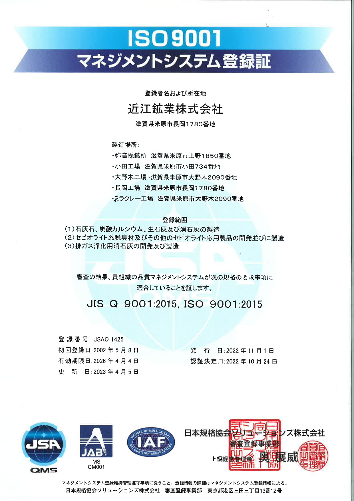 近江鉱業株式会社 ISO トップマネジメント 西川 友章